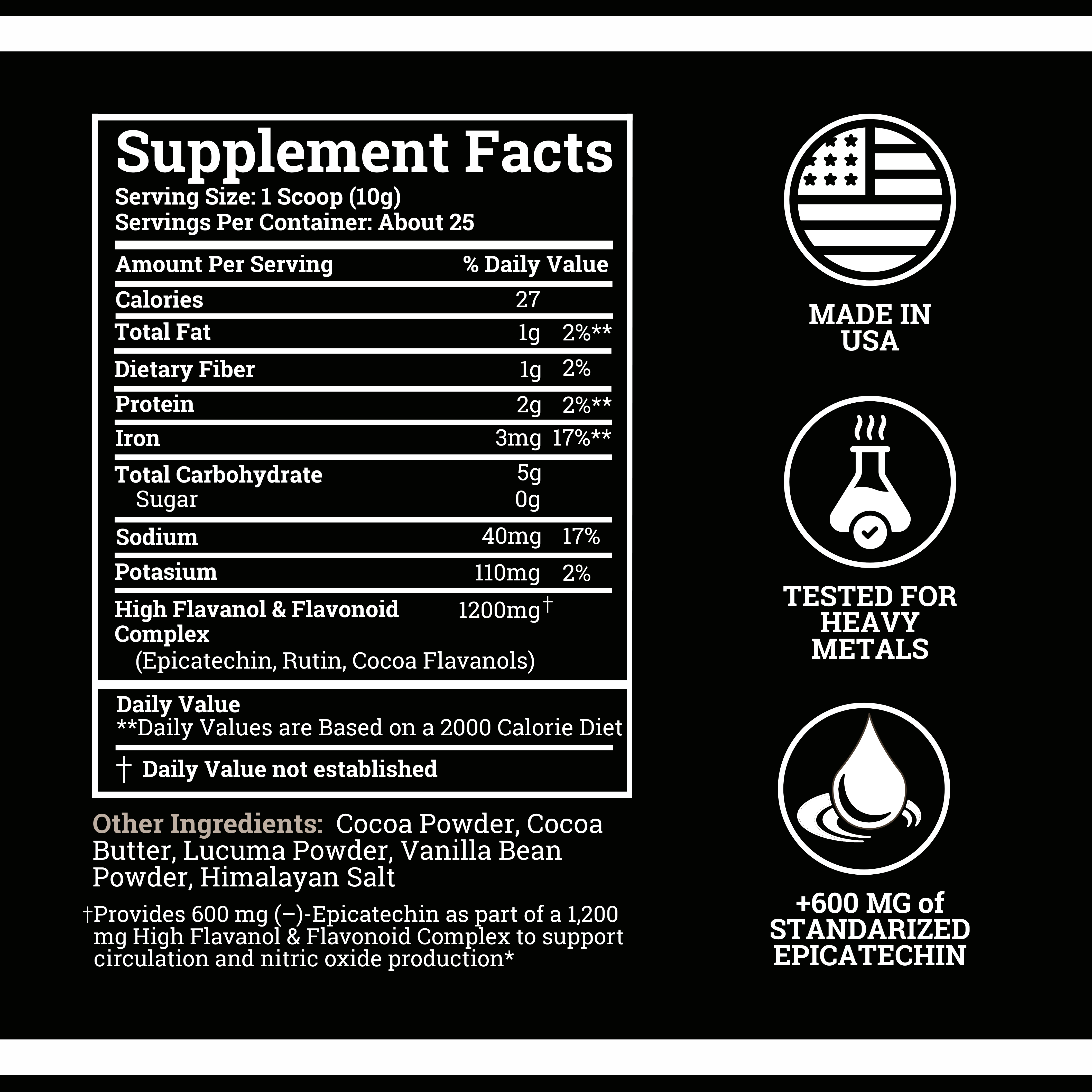 - Circulatory improvements: studies show cocoa flavanols may improve blood flow and vascular function within 2-6 hours of consumption, with continued improvements over time.*