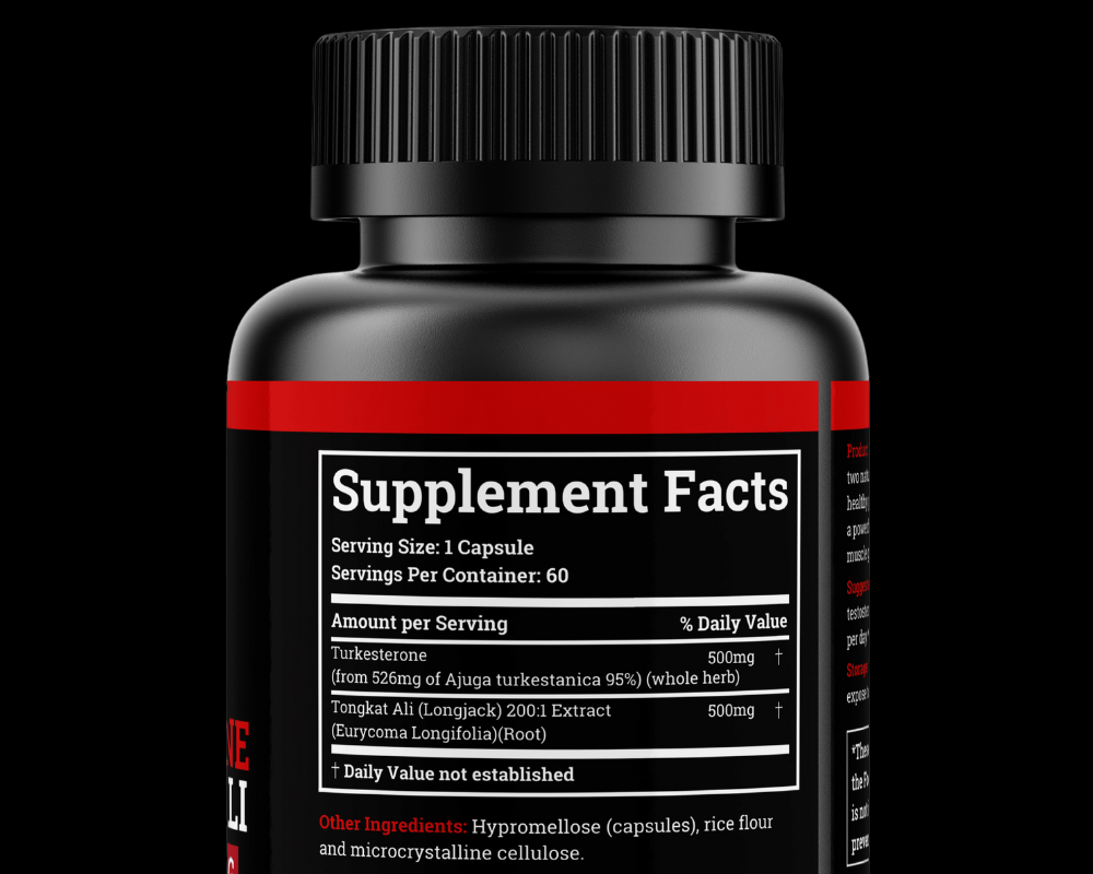 Turkesterone & Tongkat Ali supplement is a powerful blend that combines the muscle-building power of Turkesterone (Ajuga Turkestanica Extract) with the testosterone-enhancing and energy-boosting properties of Tongkat Ali (Eurycoma Longifolia Jack).